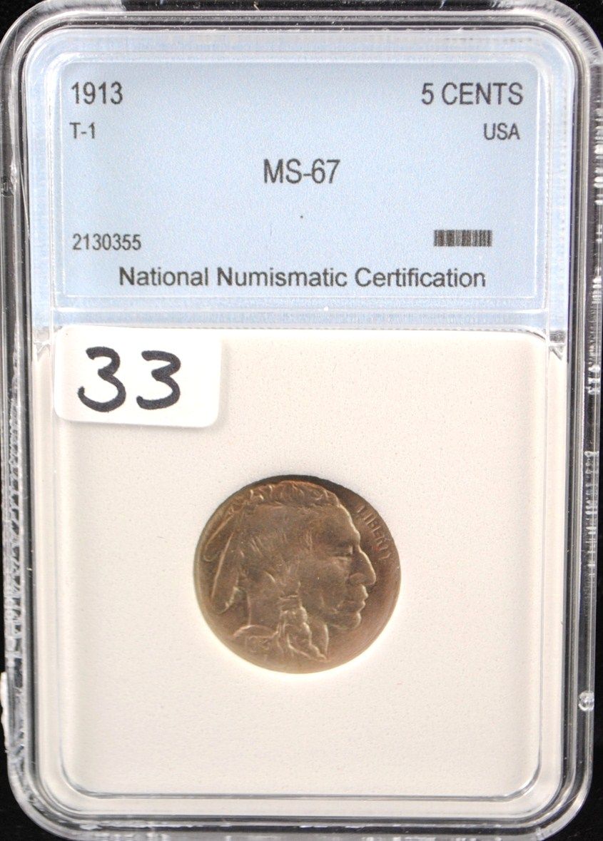 1913 TYPE 1 BUFFALO NICKEL - NNC MS67 - A MS67 LISTS @ $1,500.00