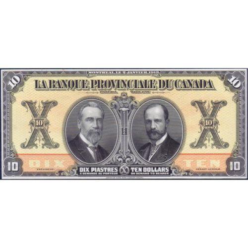 1913 Ten Dollars La Banque Provinciale du Canada Face Proof, CH 615-14-10FP, PMG Gem Uncirculated 66 Exceptional Paper Quality with matching 1913 Ten Dollars La Banque Provinciale du Canada Back Proof, CH 615-14-10BP, both PMG Gem Uncirculated 66 Exceptional Paper Quality