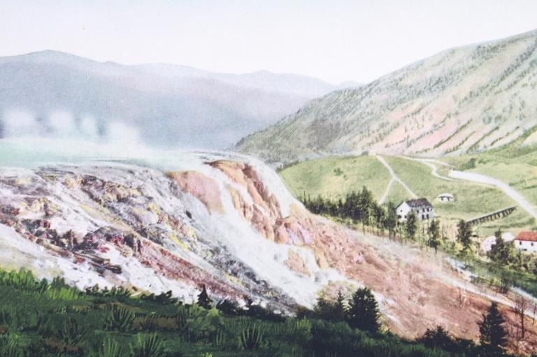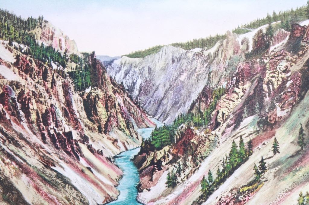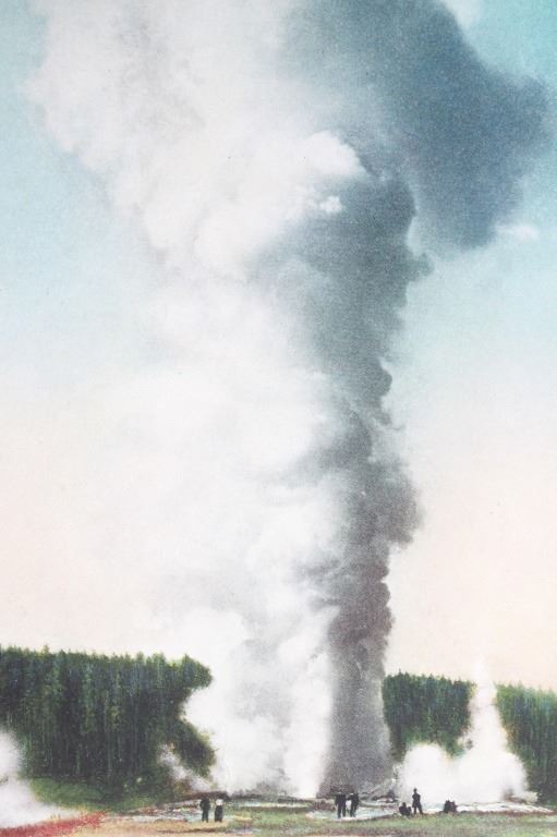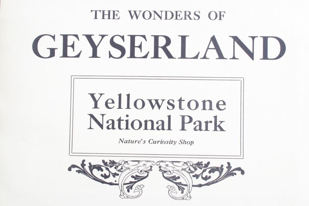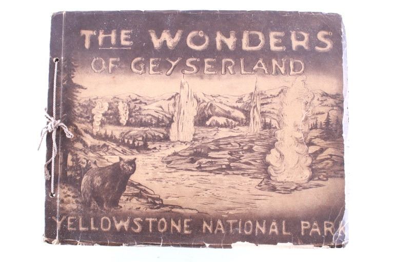 For your consideration is this 1913 edition of "The Wonders of Geyserland" published by Yellowstone National Park in 1913 and copy-righted by H .H. Tammen Company in Denver. The album features a brief write up about Yellowstone National Park and contains 16 different views of scenic points within the park, including Old Faithful, Norris Geyser Basin, Guant Geyser, Punch Bowl Spring, Old Faithful Inn, and many more. The Yellowstone album is in good condition with wear to the front, paper bound cover and spine. The interior photos are in good condition. The album measures 10 1/8" L x 13" W x 1/4" D.