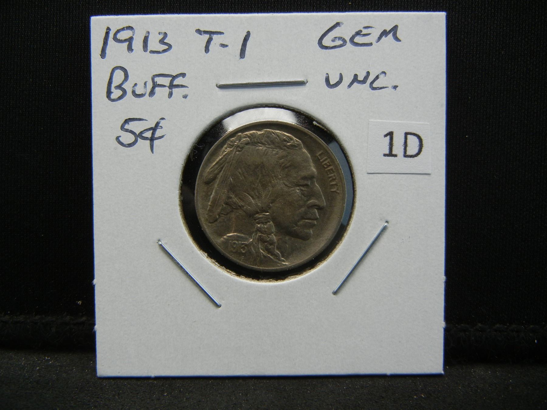 1913 Type-1 Buffalo 5c. Gem UNC.