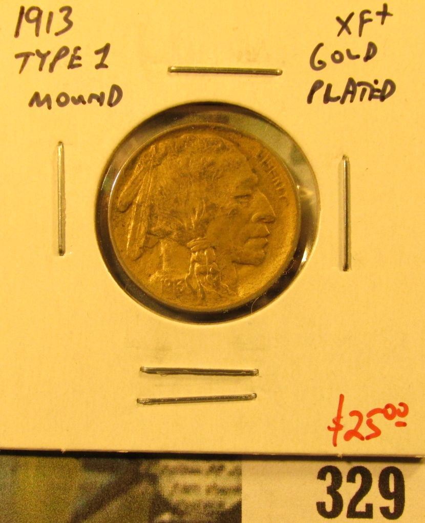 1913 Type 1 (mound) Buffalo Nickel, XF+ gold plated, value $25