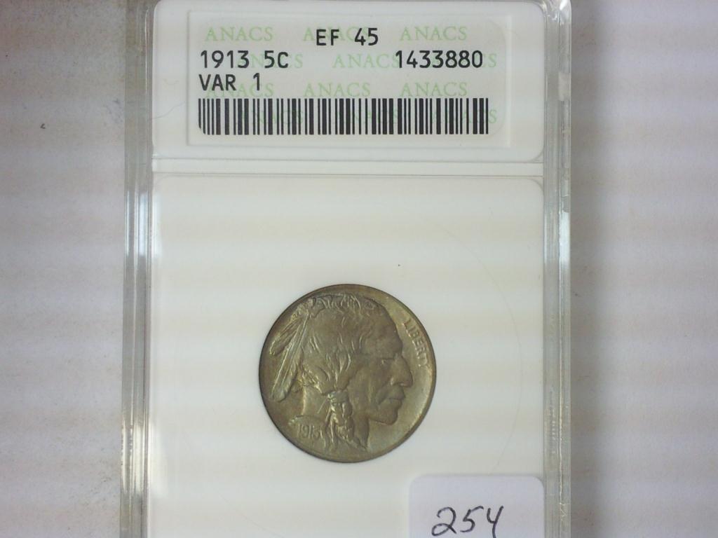 1913 VARIETY 1 BUFFALO NICKEL ANACS (EXTRA FINE45)