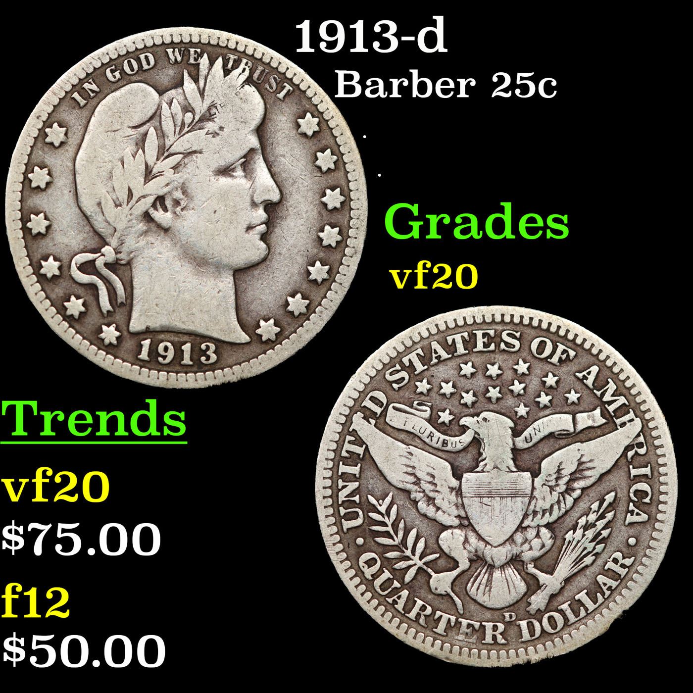 1913-d Barber Quarter 25c Grades vf, very fine.