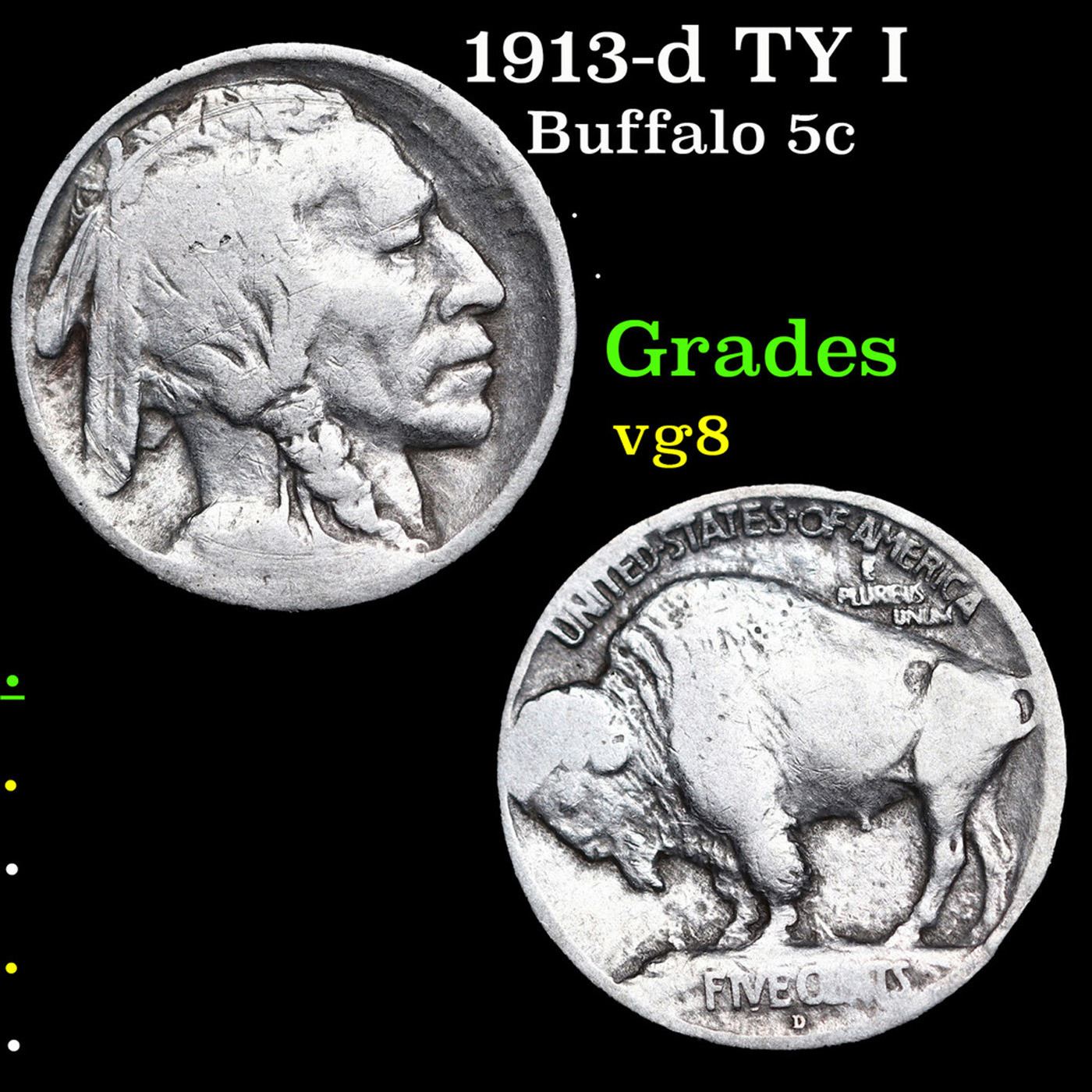 1913-d TY I Buffalo Nickel 5c Grades vg, very good