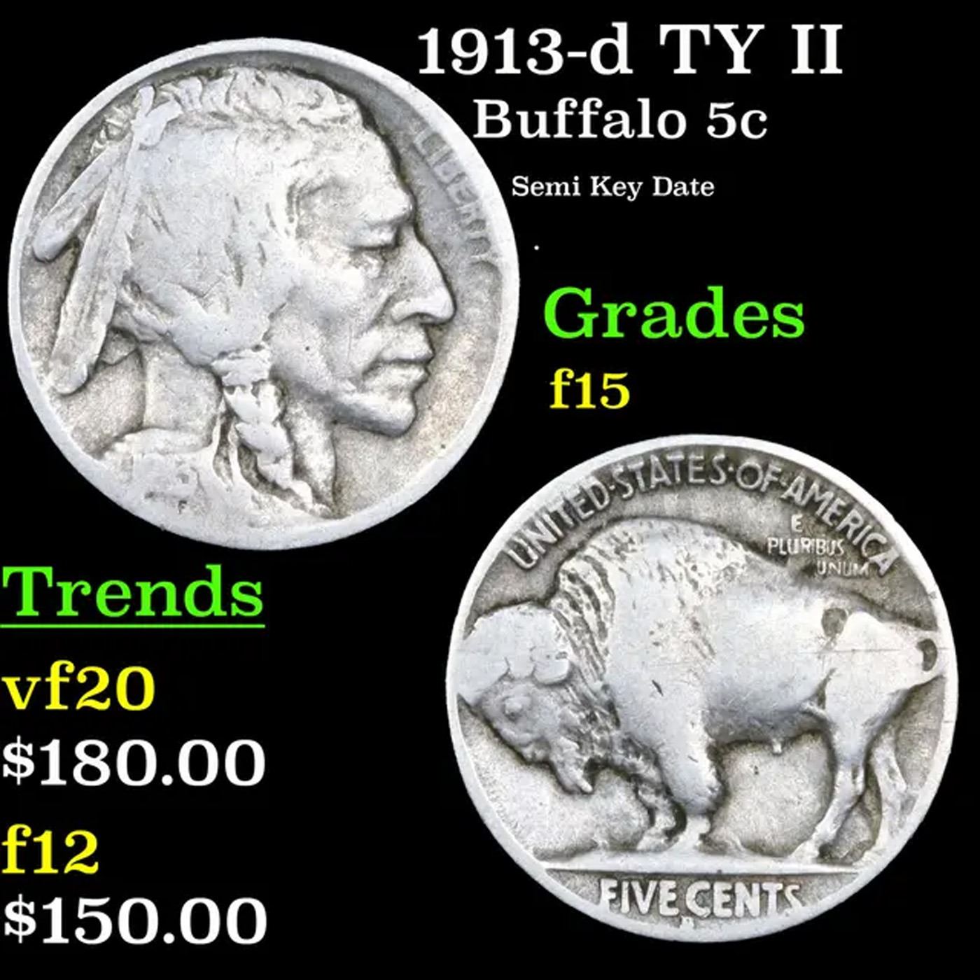 1913-d TY II Buffalo Nickel 5c Grades f+.