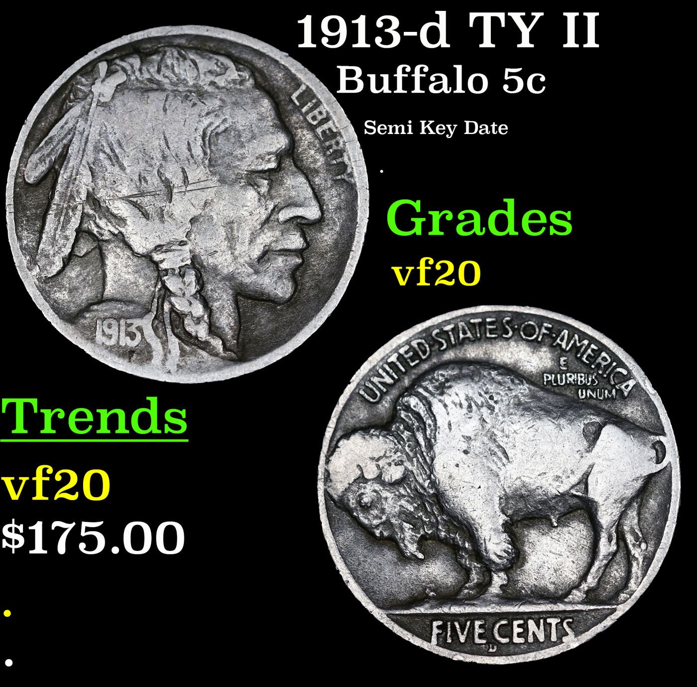 1913-d TY II Buffalo Nickel 5c Grades vf, very fine
