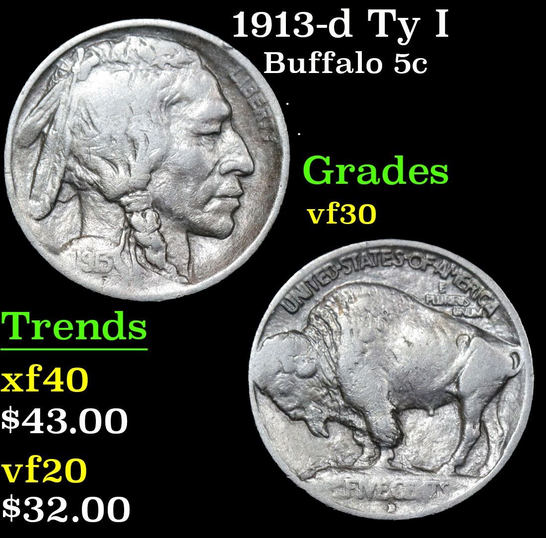 1913-d Ty I . . Buffalo Nickel 5c Grades vf++.