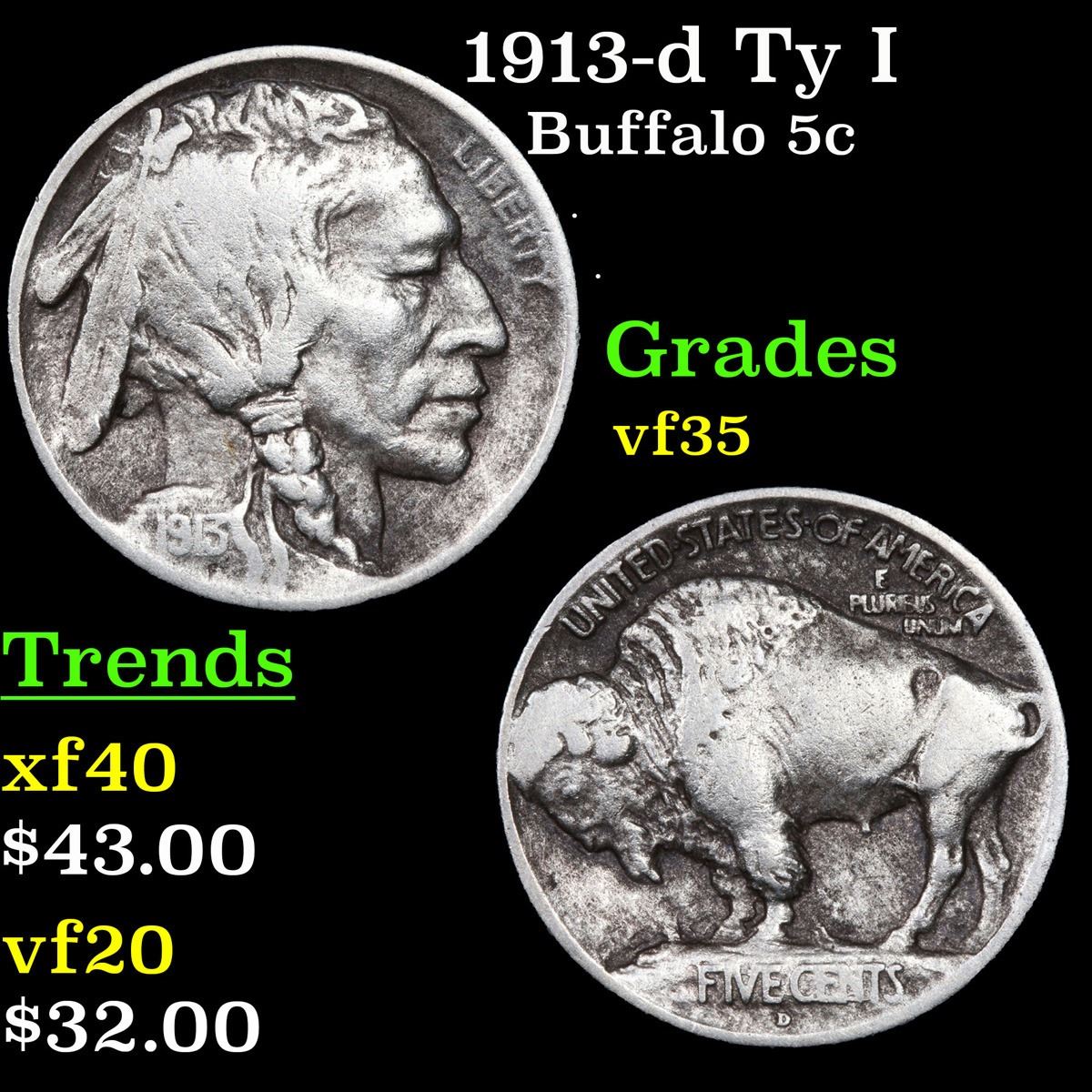 1913-d Ty I . . Buffalo Nickel 5c Grades vf++.