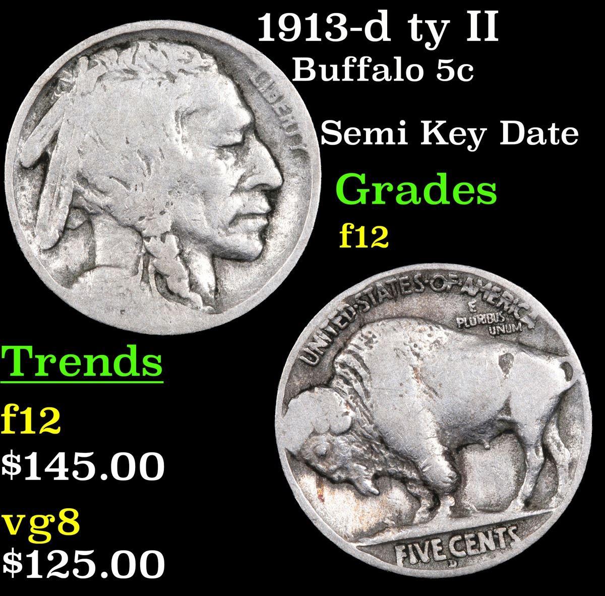 1913-d ty II Semi Key Date . Buffalo Nickel 5c Grades f, fine.