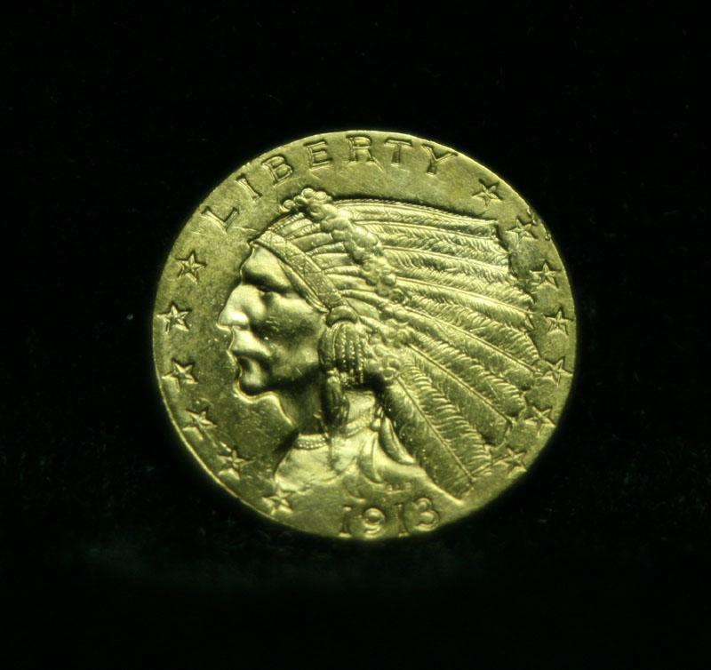 Beautiful example of the $2 1/2 Indian Gold. Great Luster and a Great Strike, Nice Rounded cheek, where it is usually flat. A really Great example. Coin World's Coin Values lists ms64 at $2250 and The Wholesale Greysheet lists ms64 at $1625. Estimated Value $1750