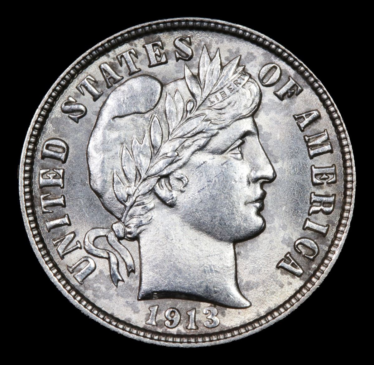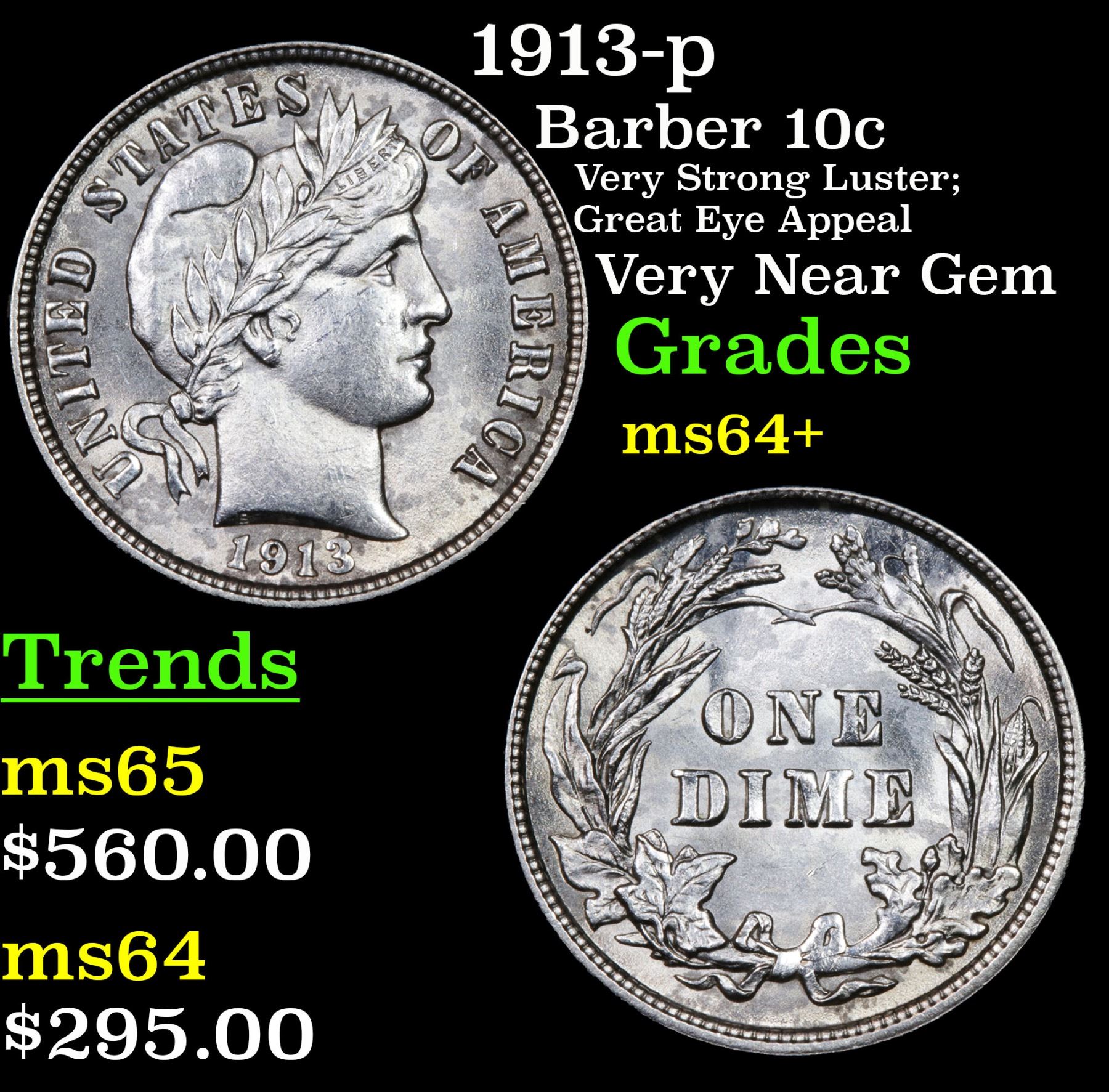 1913-p Very Strong Luster; Great Eye Appeal Very Near Gem Barber Dime 10c Grades Choice+ Unc.