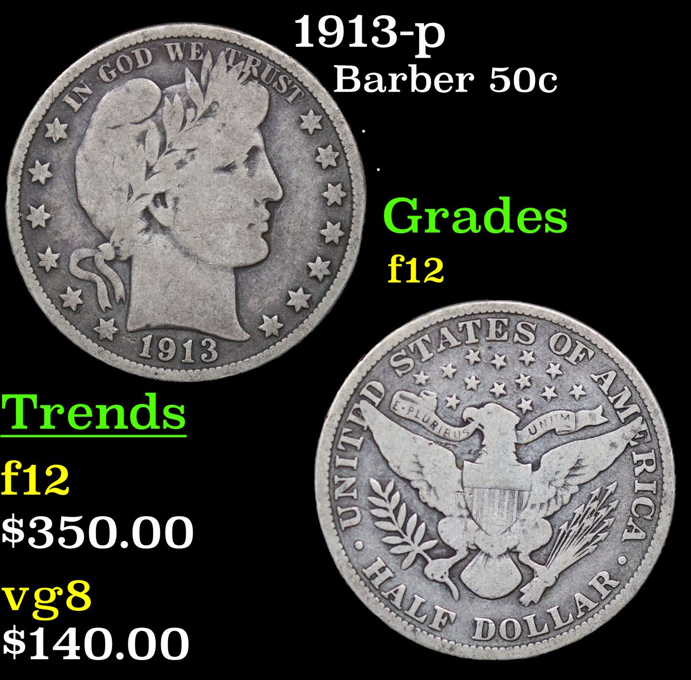 1913-p Barber Half Dollars 50c Grades f, fine
