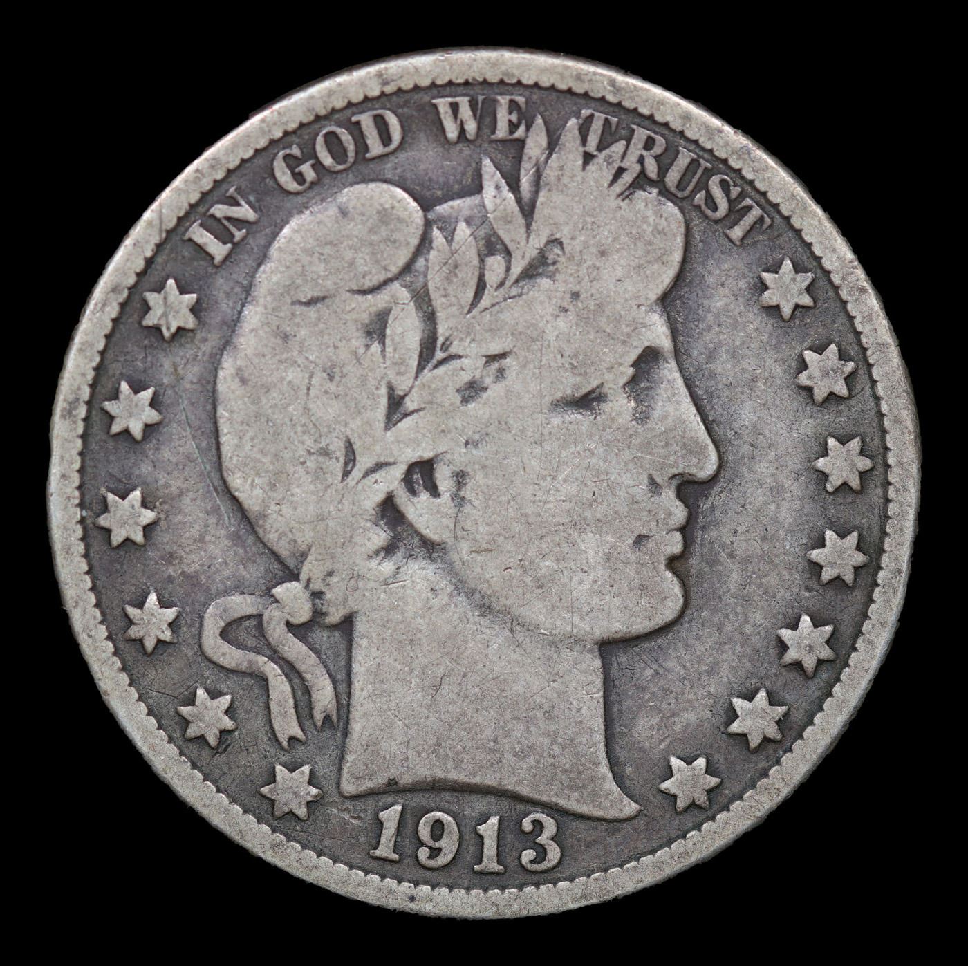 1913-p Barber Half Dollars 50c Grades f, fine.