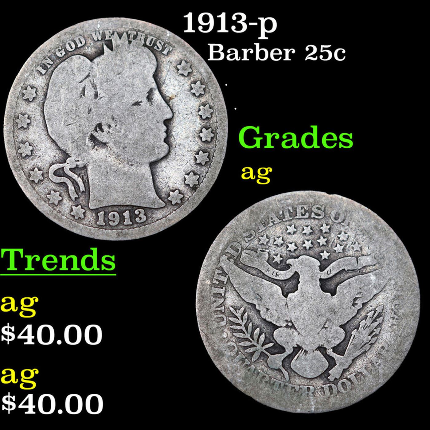 1913-p Barber Quarter 25c Grades ag.