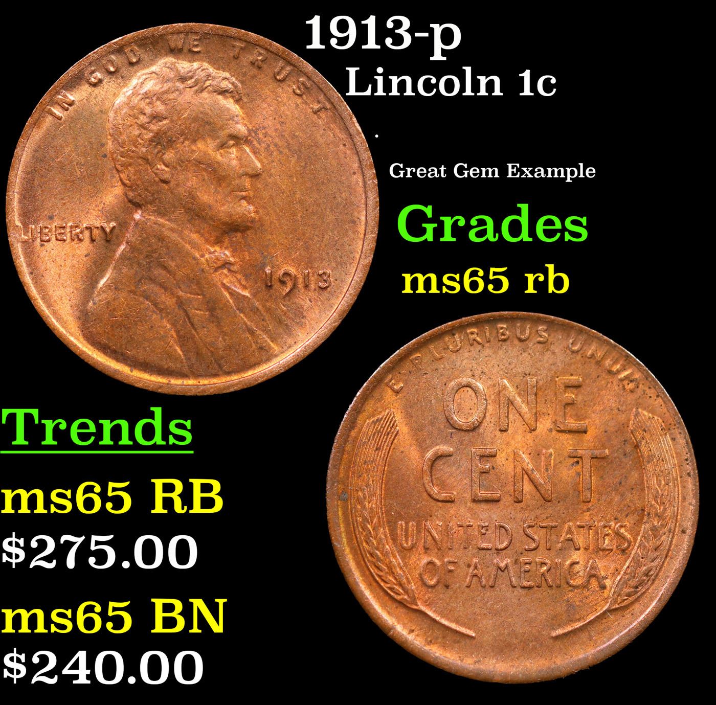 1913-p Lincoln Cent 1c Grades GEM Unc RB.