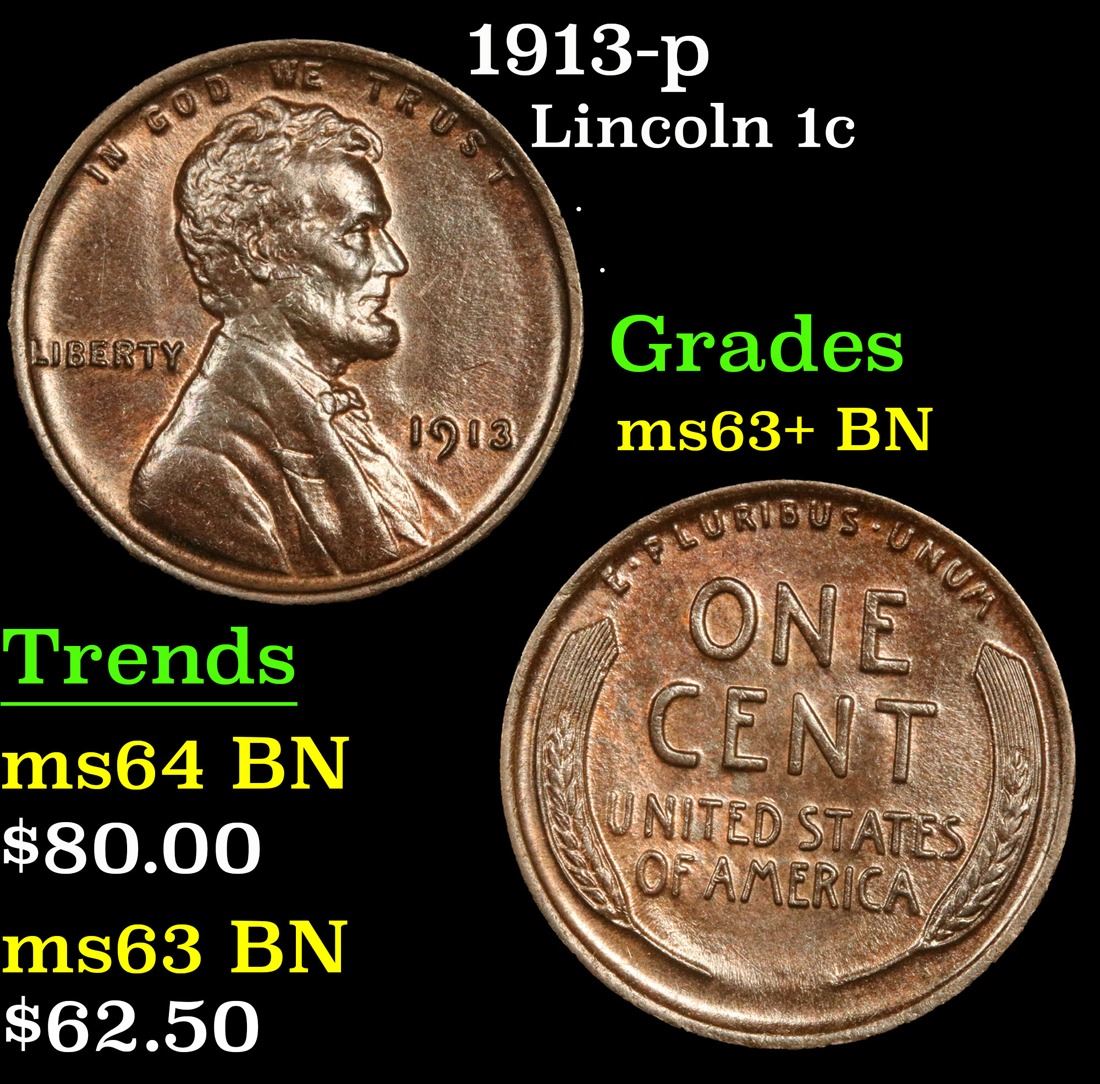 1913-p . . Lincoln Cent 1c Grades Select+ Unc BN.