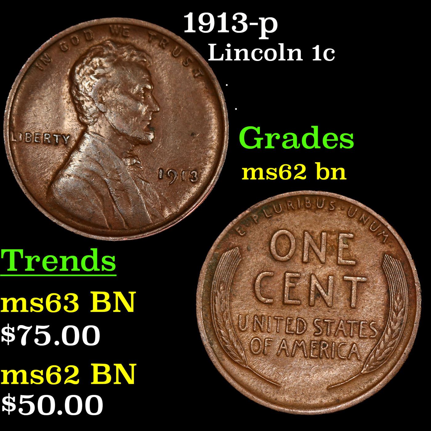 1913-p Lincoln Cent 1c Grades Select Unc BN.