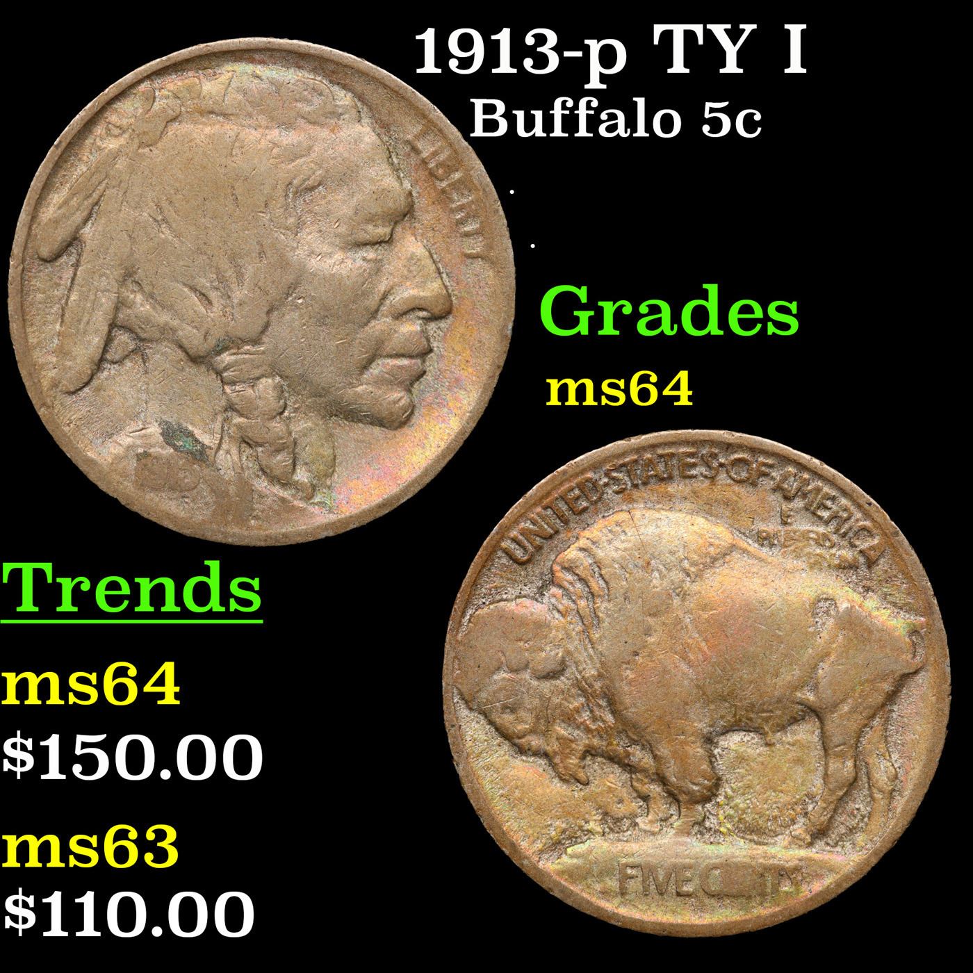 1913-p TY I Buffalo Nickel 5c Grades Choice Unc.