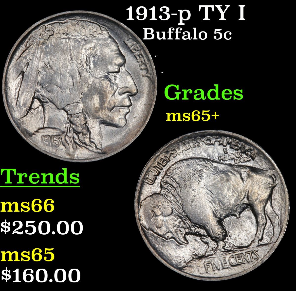 1913-p TY I . . Buffalo Nickel 5c Grades GEM+ Unc.