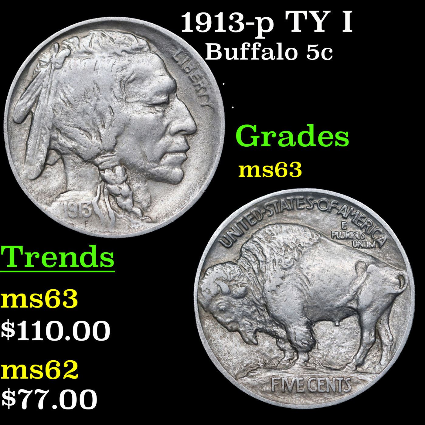 1913-p TY I Buffalo Nickel 5c Grades Select Unc.