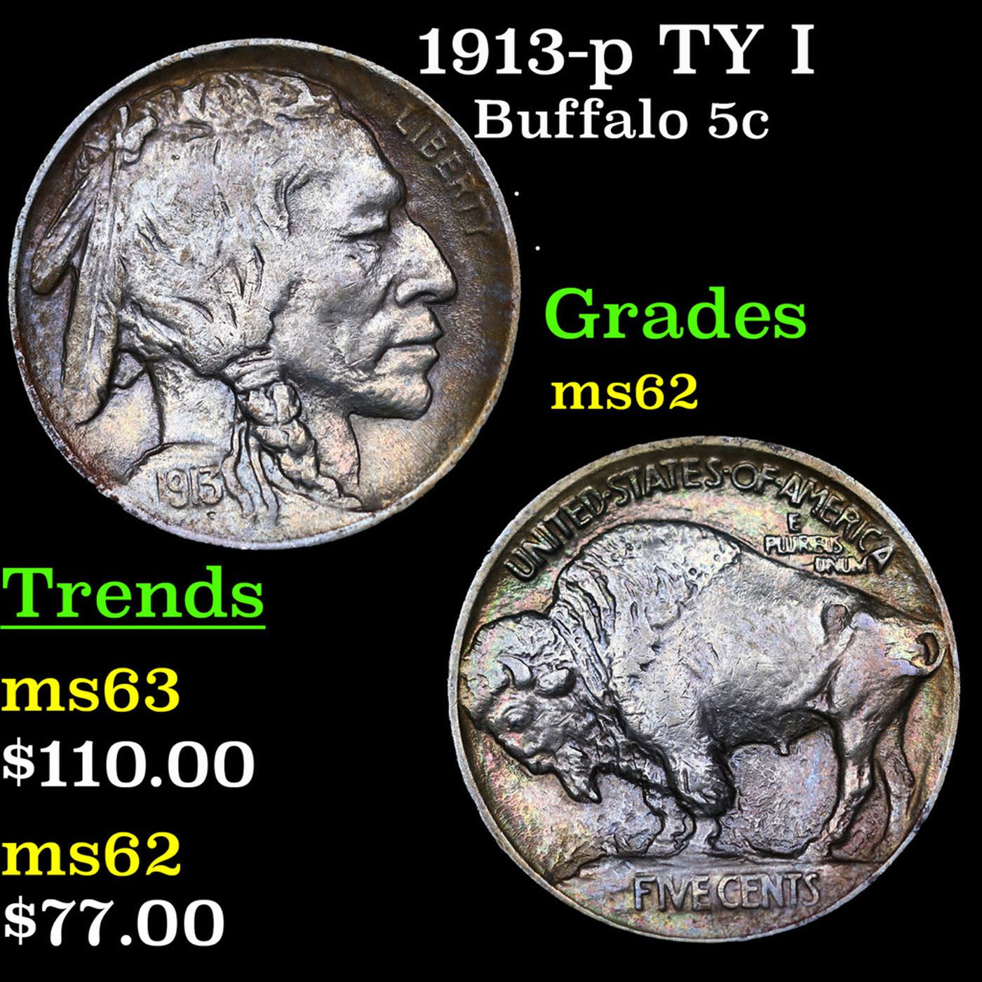 1913-p TY I Buffalo Nickel 5c Grades Select Unc.