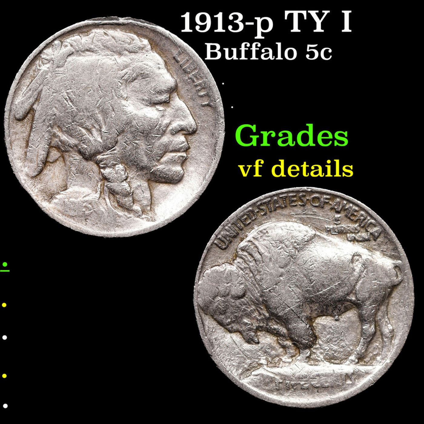 1913-p TY I Buffalo Nickel 5c Grades vf details.