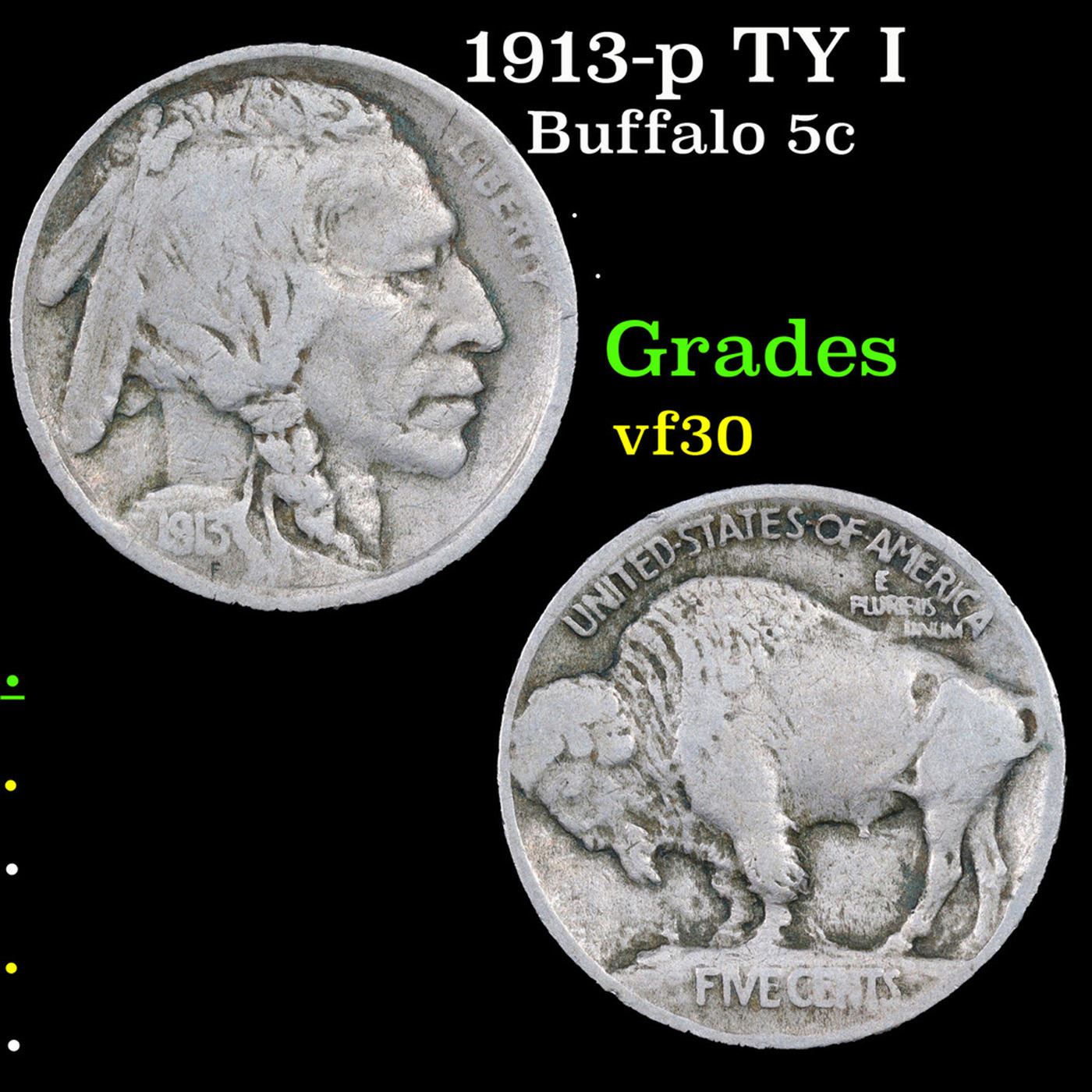 1913-p TY I Buffalo Nickel 5c Grades vf++.
