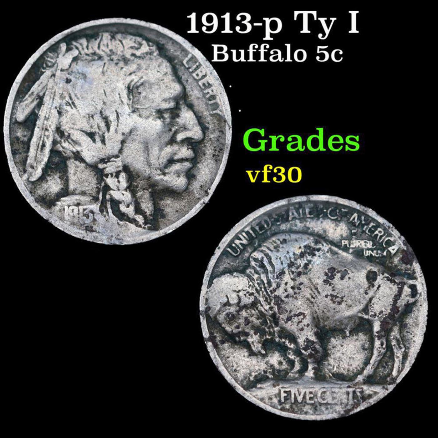 1913-p TY I Buffalo Nickel 5c Grades vf++.