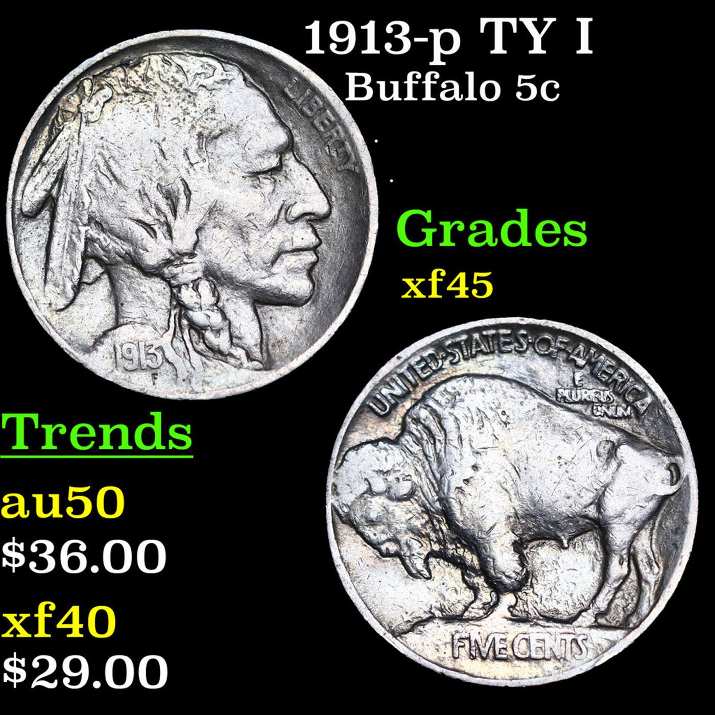1913-p TY I Buffalo Nickel 5c Grades xf+.