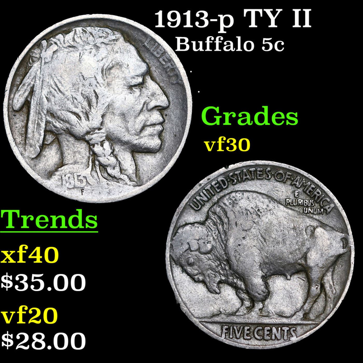 1913-p TY II Buffalo Nickel 5c Grades vf++.