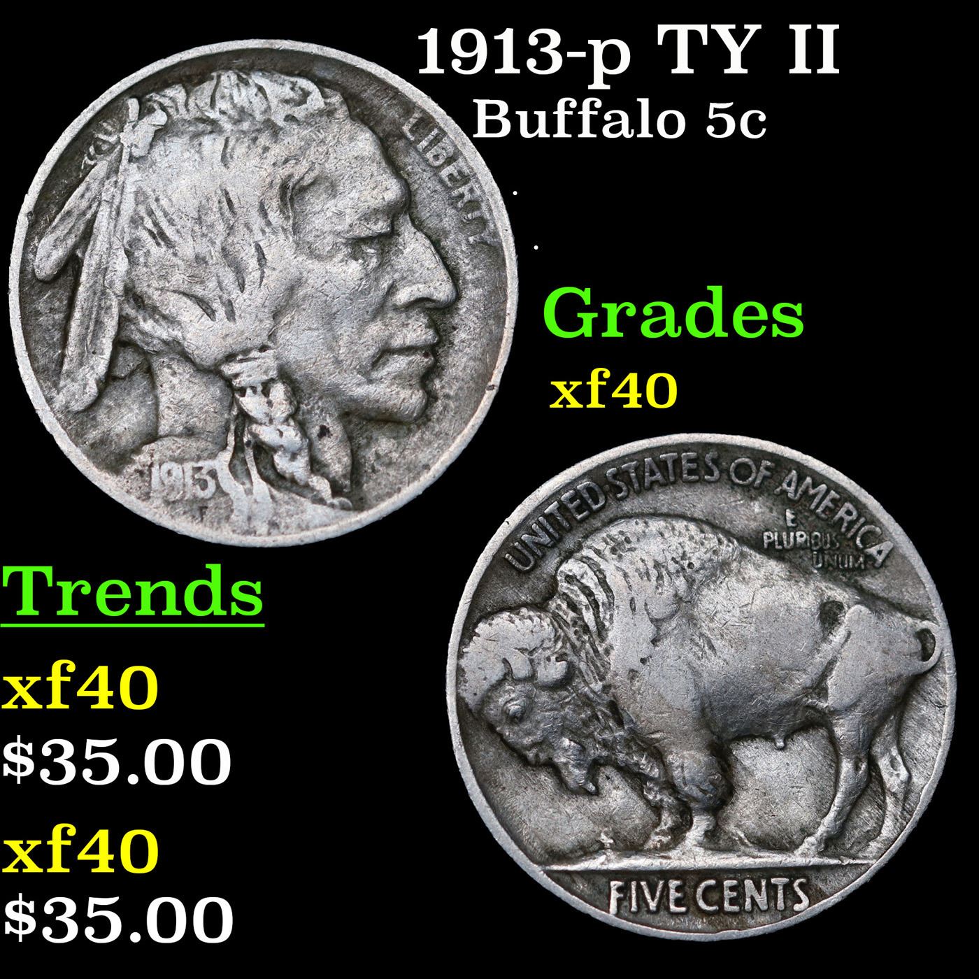 1913-p TY II Buffalo Nickel 5c Grades xf.