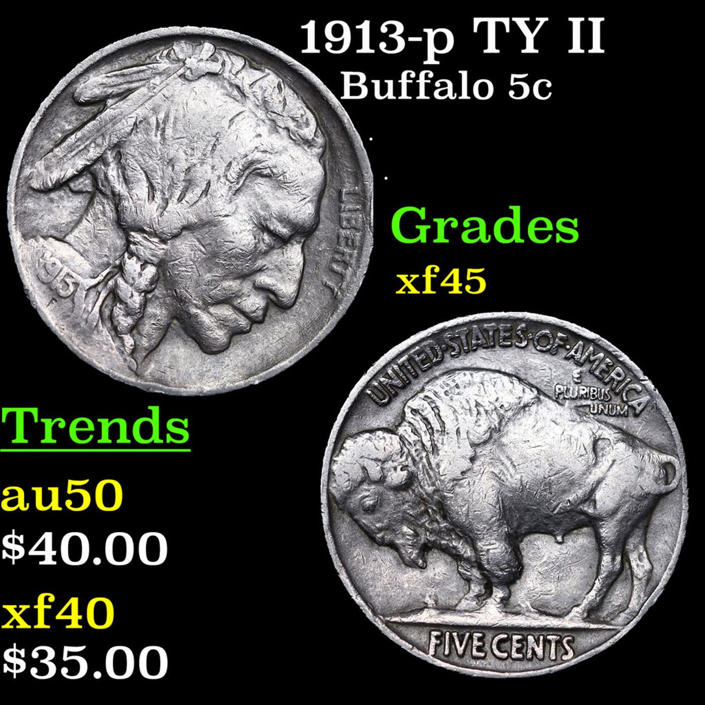 1913-p TY II Buffalo Nickel 5c Grades xf+.