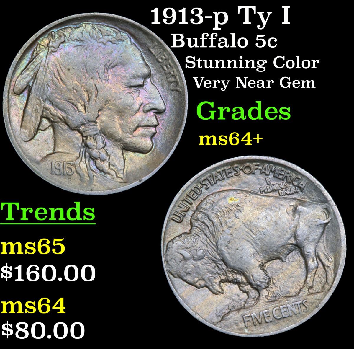 1913-p Ty I Buffalo Nickel 5c Grades Choice+ Unc.