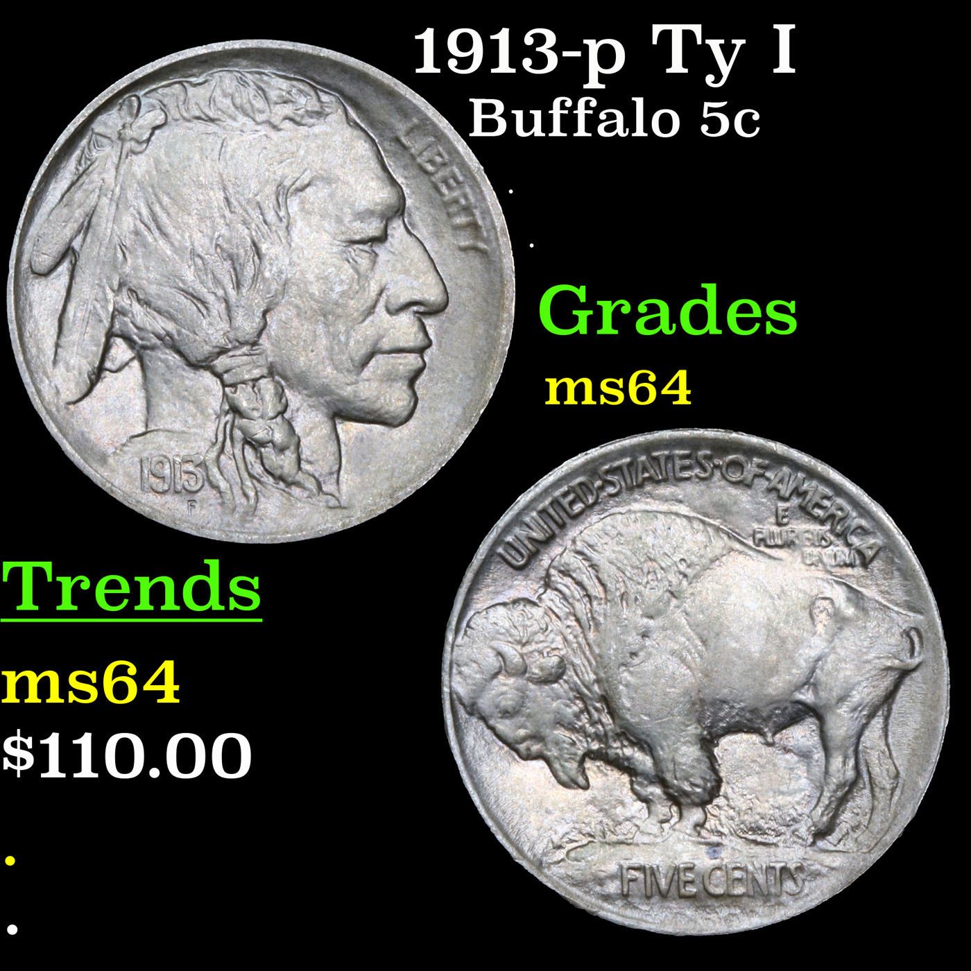 1913-p Ty I Buffalo Nickel 5c Grades Choice Unc.