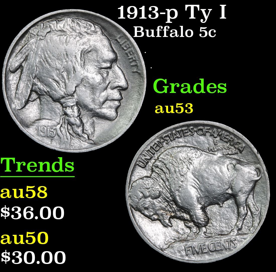 1913-p Ty I . . Buffalo Nickel 5c Grades Select AU.