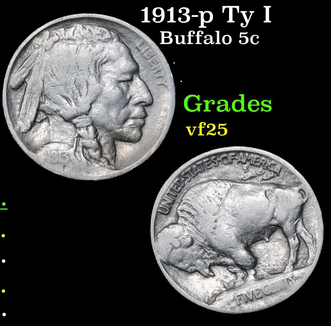 1913-p Ty I . . Buffalo Nickel 5c Grades vf+.