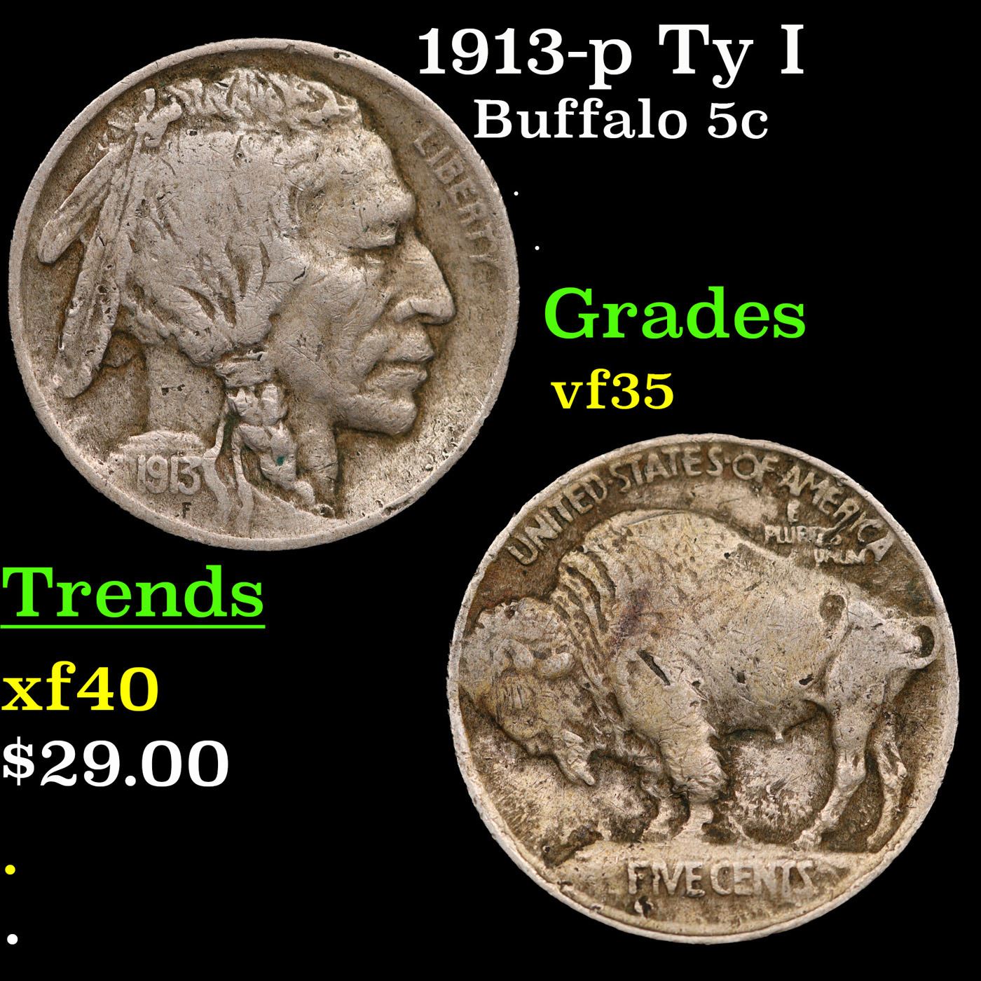 1913-p Ty I Buffalo Nickel 5c Grades vf++.