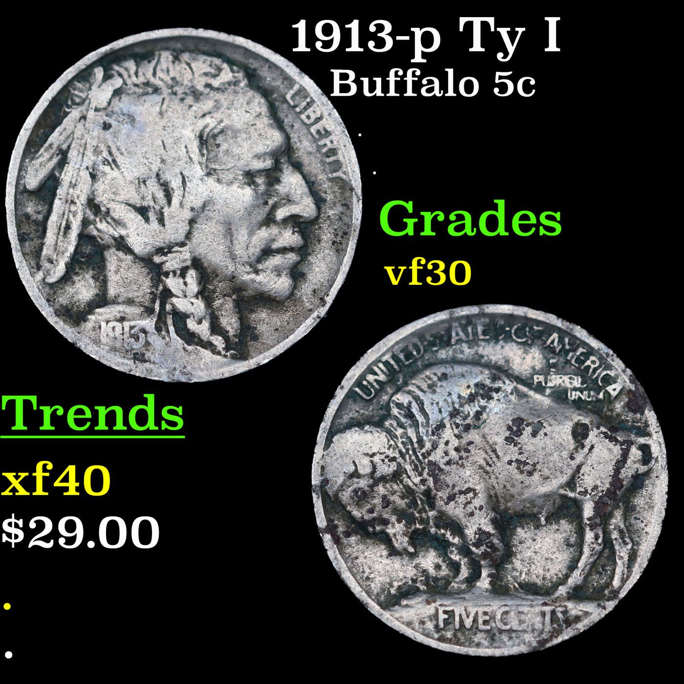 1913-p Ty I Buffalo Nickel 5c Grades vf++.