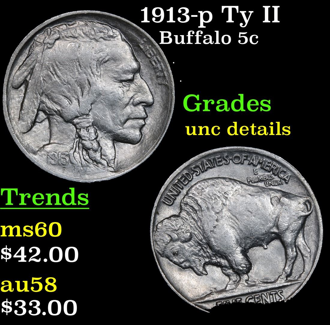1913-p Ty II . . Buffalo Nickel 5c Grades Unc Details.