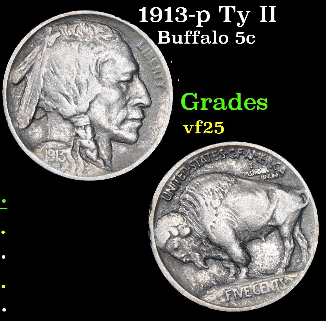1913-p Ty II . . Buffalo Nickel 5c Grades vf+.