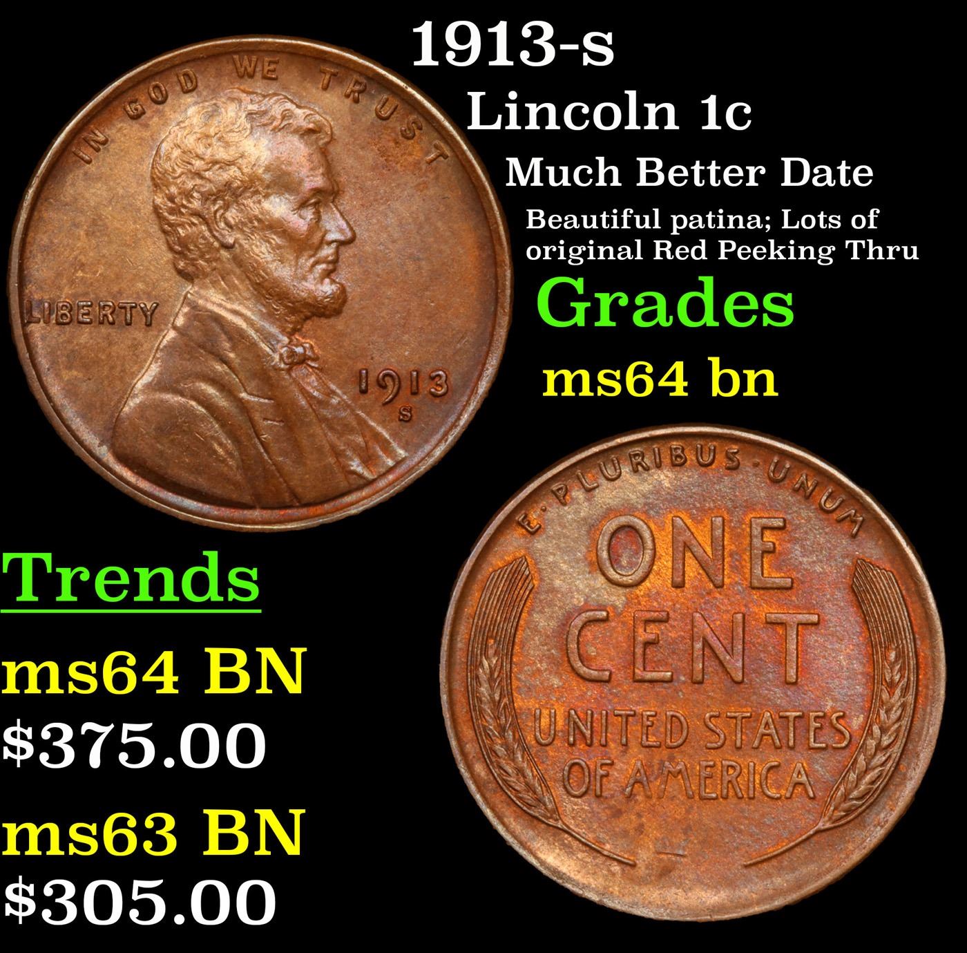 1913-s Lincoln Cent 1c Grades Choice Unc BN.