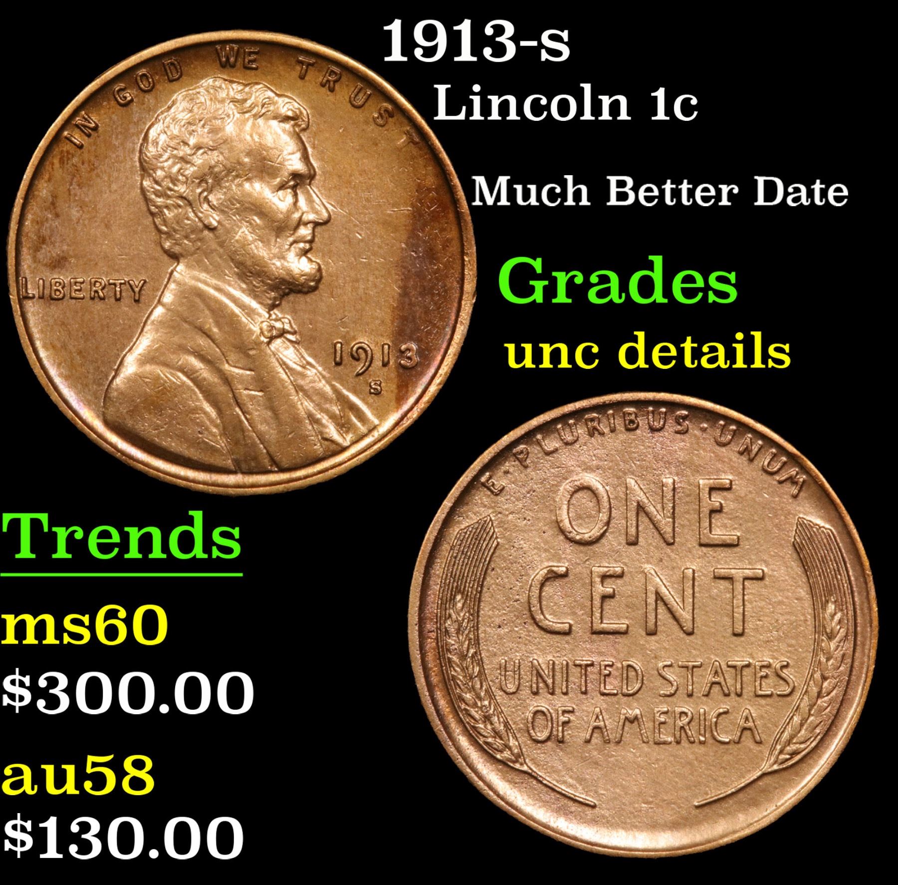 1913-s Much Better Date . Lincoln Cent 1c Grades Unc Details.