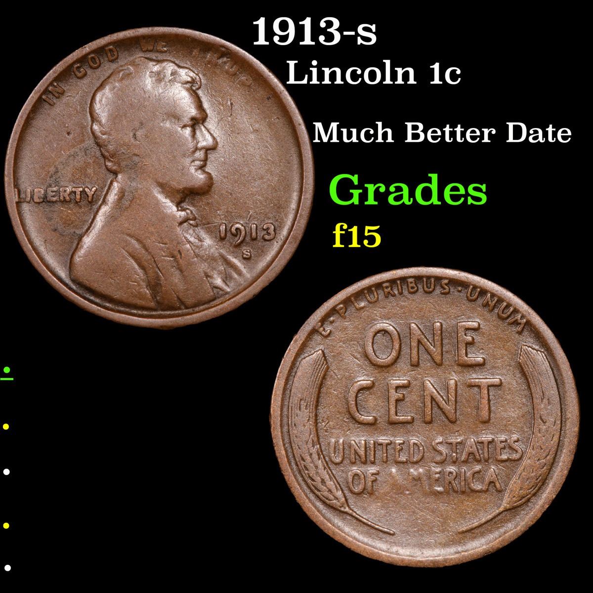 1913-s Much Better Date . Lincoln Cent 1c Grades f+.