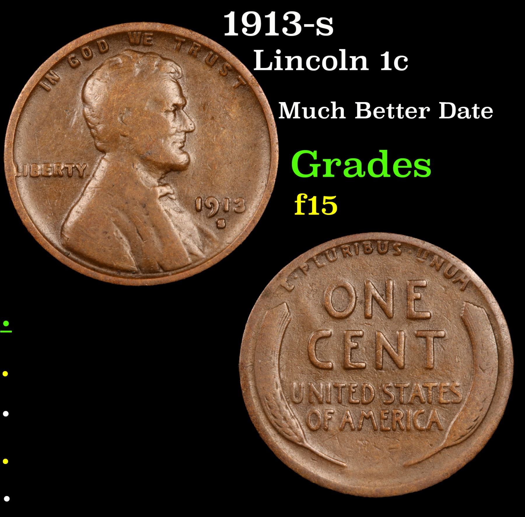 1913-s Lincoln Cent 1c Grades f+.