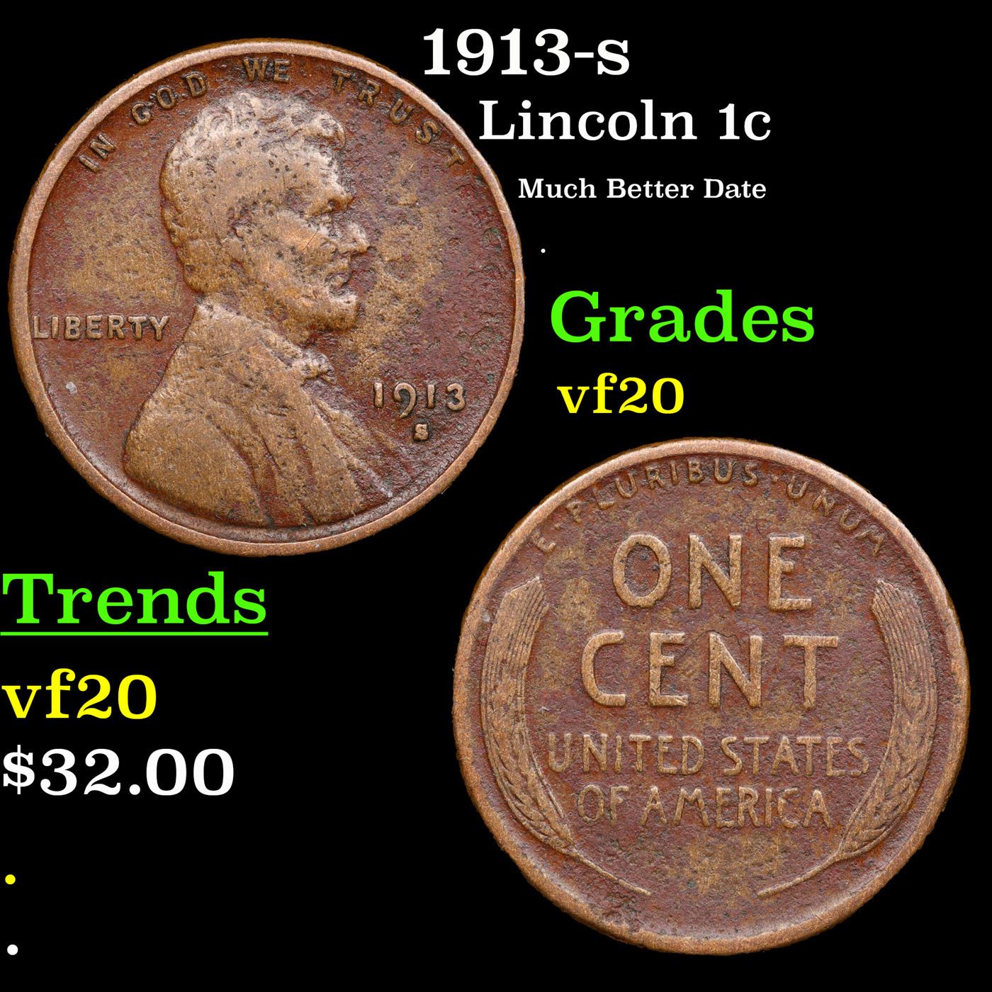 1913-s Lincoln Cent 1c Grades vf, very fine
