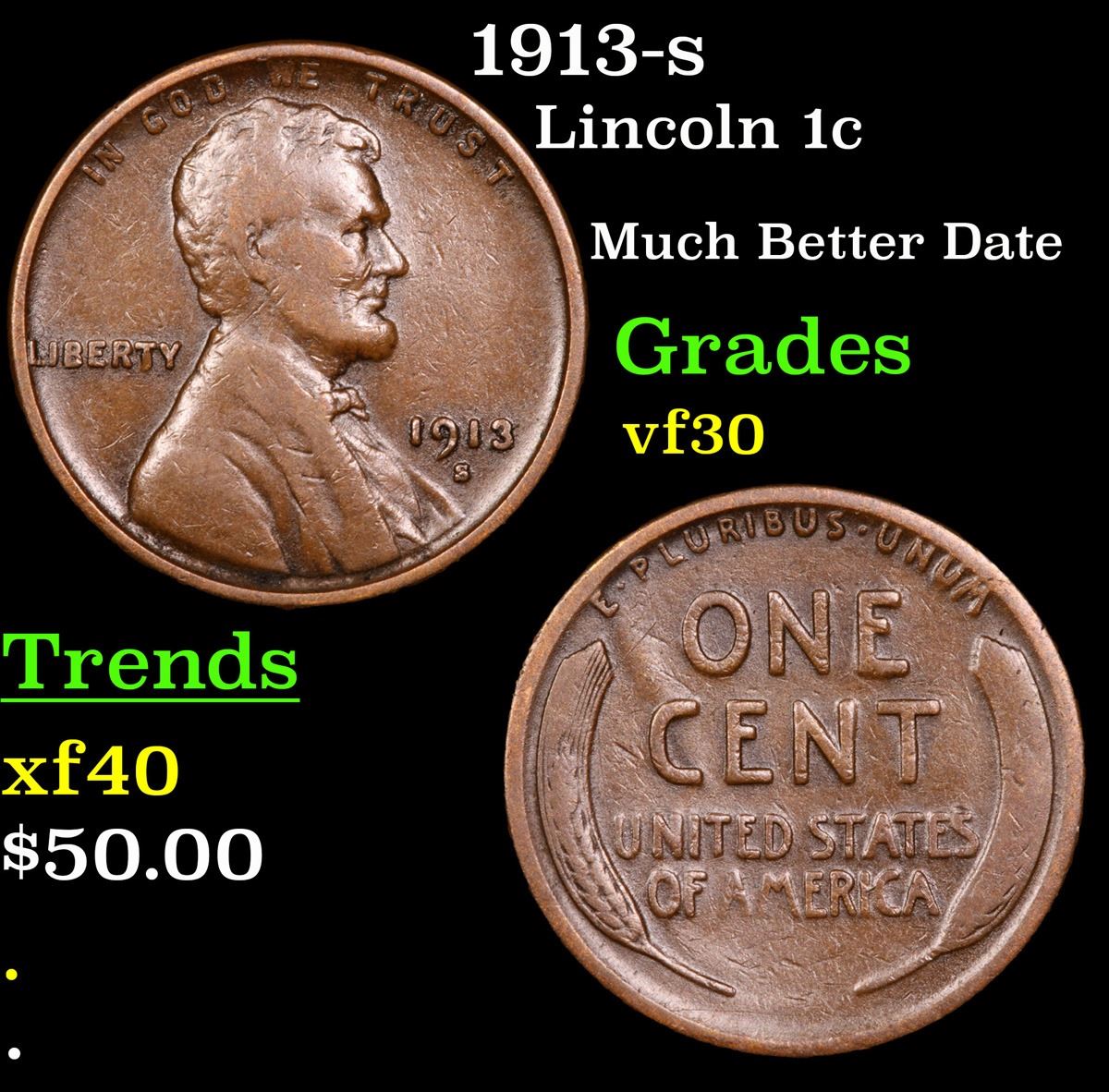 1913-s Much Better Date . Lincoln Cent 1c Grades vf++.
