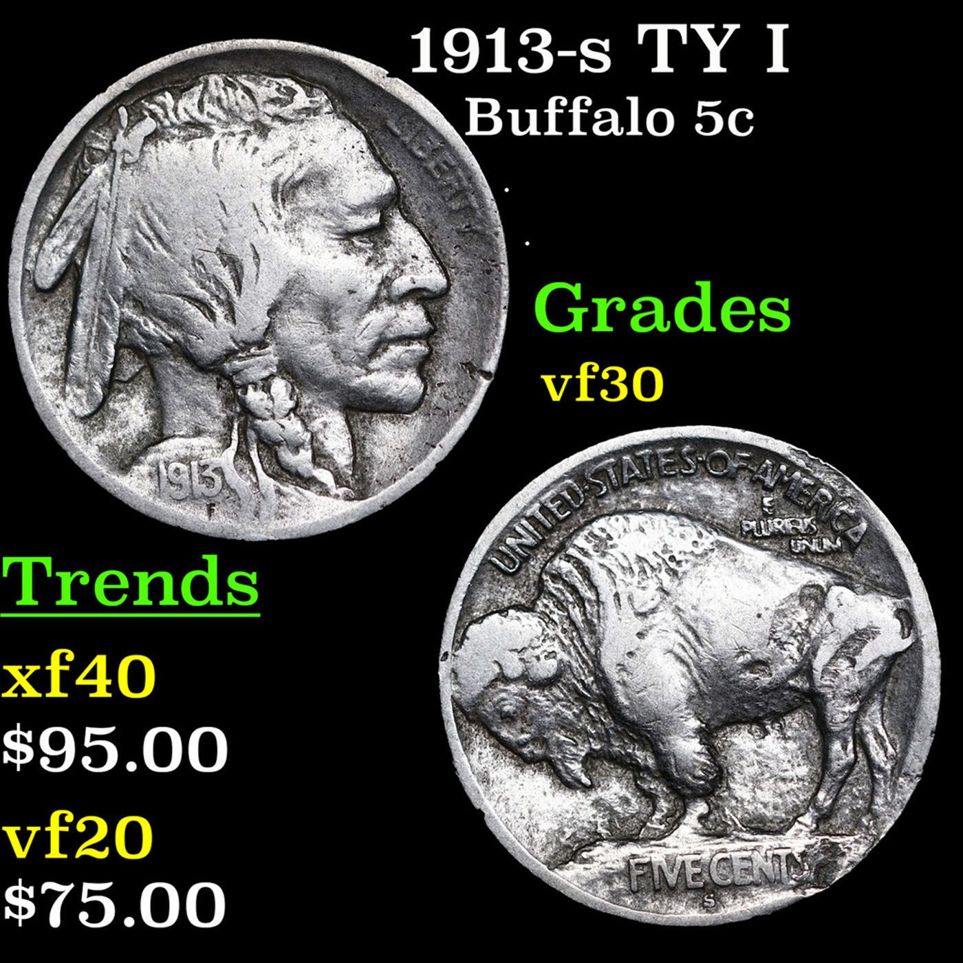 1913-s TY I Buffalo Nickel 5c Grades vf++.