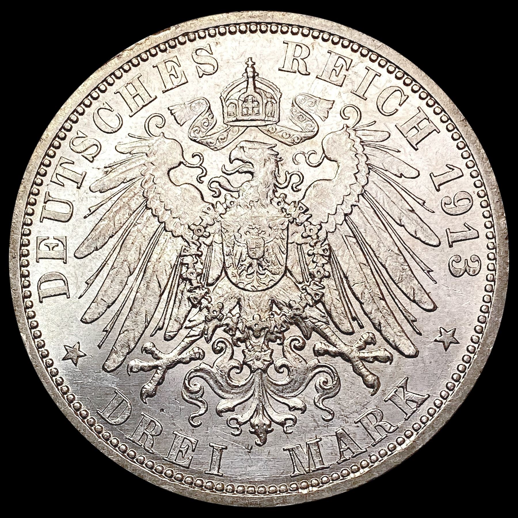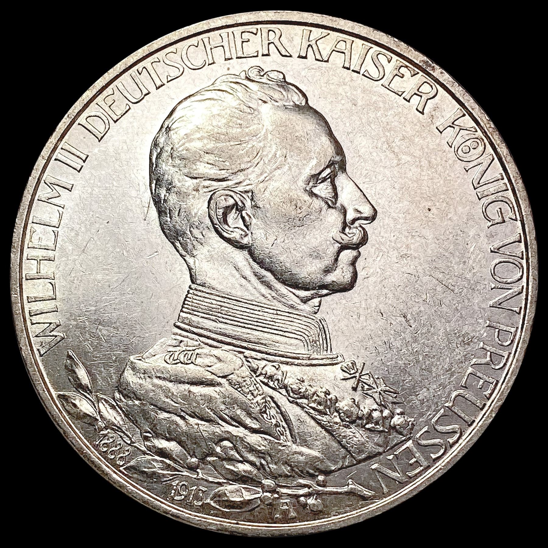 1913A .482oz Silv. Germany Prussia 3 Mark CHOICE BU