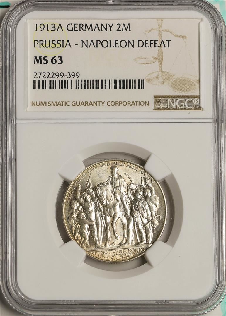 One 1913A Germany 2 Marks Prussia - Napoleon Defeat NGC MS63. NGC Certified.