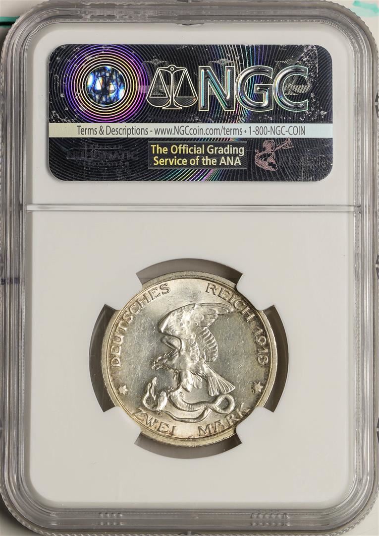 One 1913A Germany 2 Marks Prussia - Napoleon Defeat NGC MS63. NGC Certified.